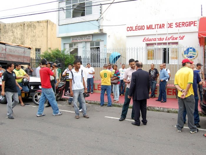 Manhã movimentada em frente da Associação Beneficente dos Servidores Militares de Sergipe que fica ao lado do Comando da Polícia Militar no Centro de Aracaju. O motivo foi a prisão - já anunciada pelo Portal Infonet - do sargento Vieira às 8h. A esposa do Militar ficou revoltada e chorou muito a todo o momento. Os militares fizeram uma manifestação de apoio a Vieira que deve ficar preso no Comando da PM até o próximo domingo, 20.